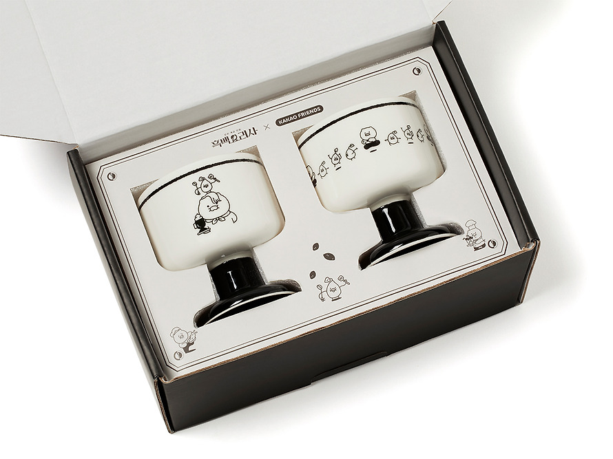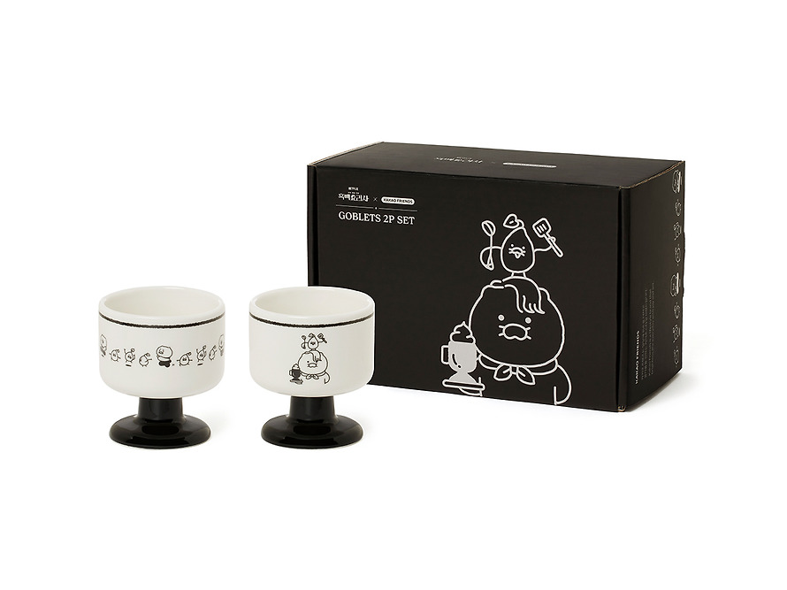 現貨 𝒃𝒊𝒈𝒃𝒐𝒔𝒔ᵏᵒʳᵉᵃ 韓國正品 KAKAO FRIENDS 🇰🇷 黑白大廚聯名 高腳杯2件組